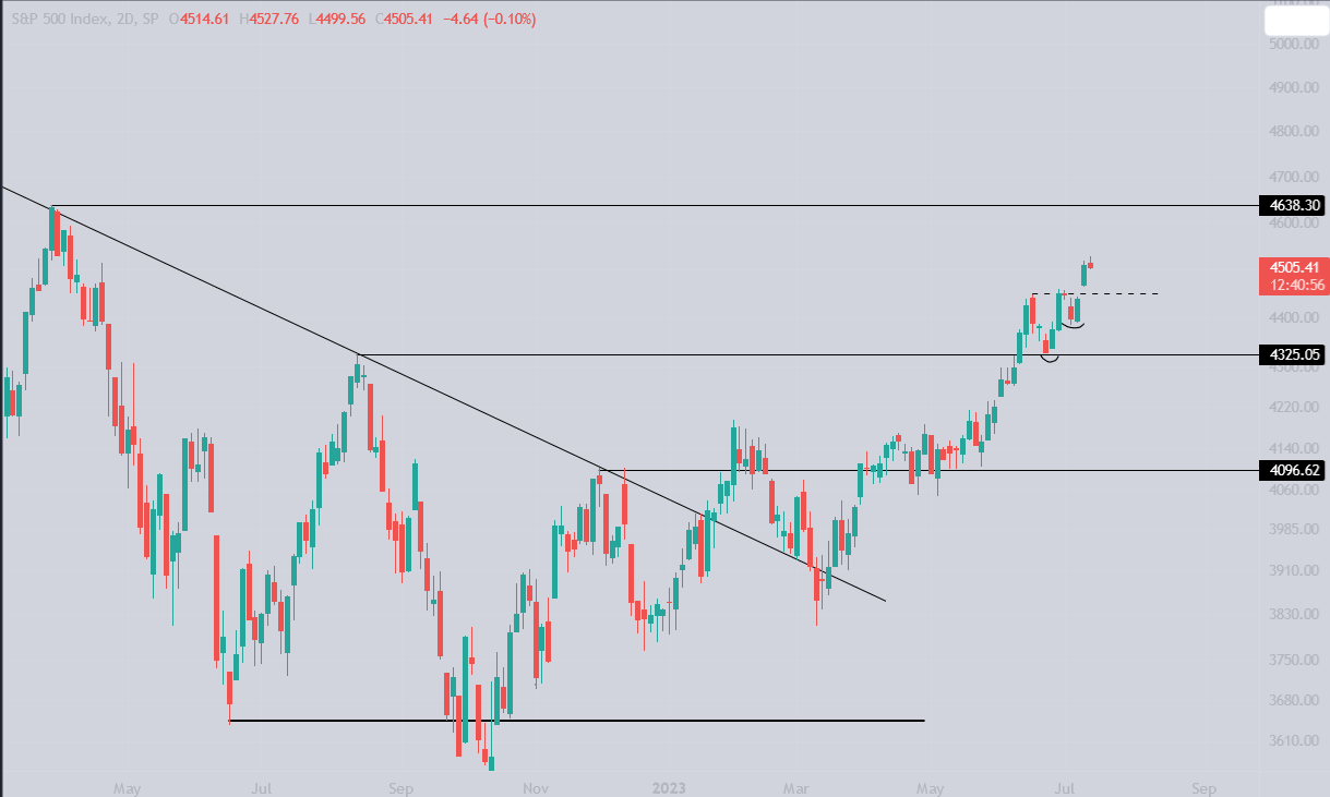 Last week, we suspected a swing failure pattern, but a higher low was printed and stocks continued to climb, making a new high and continuing their journey towards the last resistance at 4638 before reaching all-time highs.